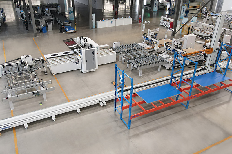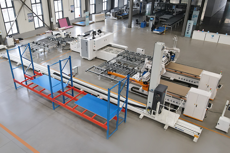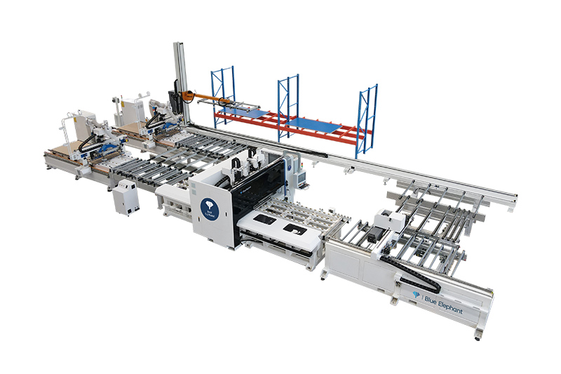 一拖二贴标钻切生产线可一次性完成自动贴标、开料、钻孔,生产线简化了工序,减少了生产过程中板材的移动和搬运,节省了人力,减少了板材的损坏。